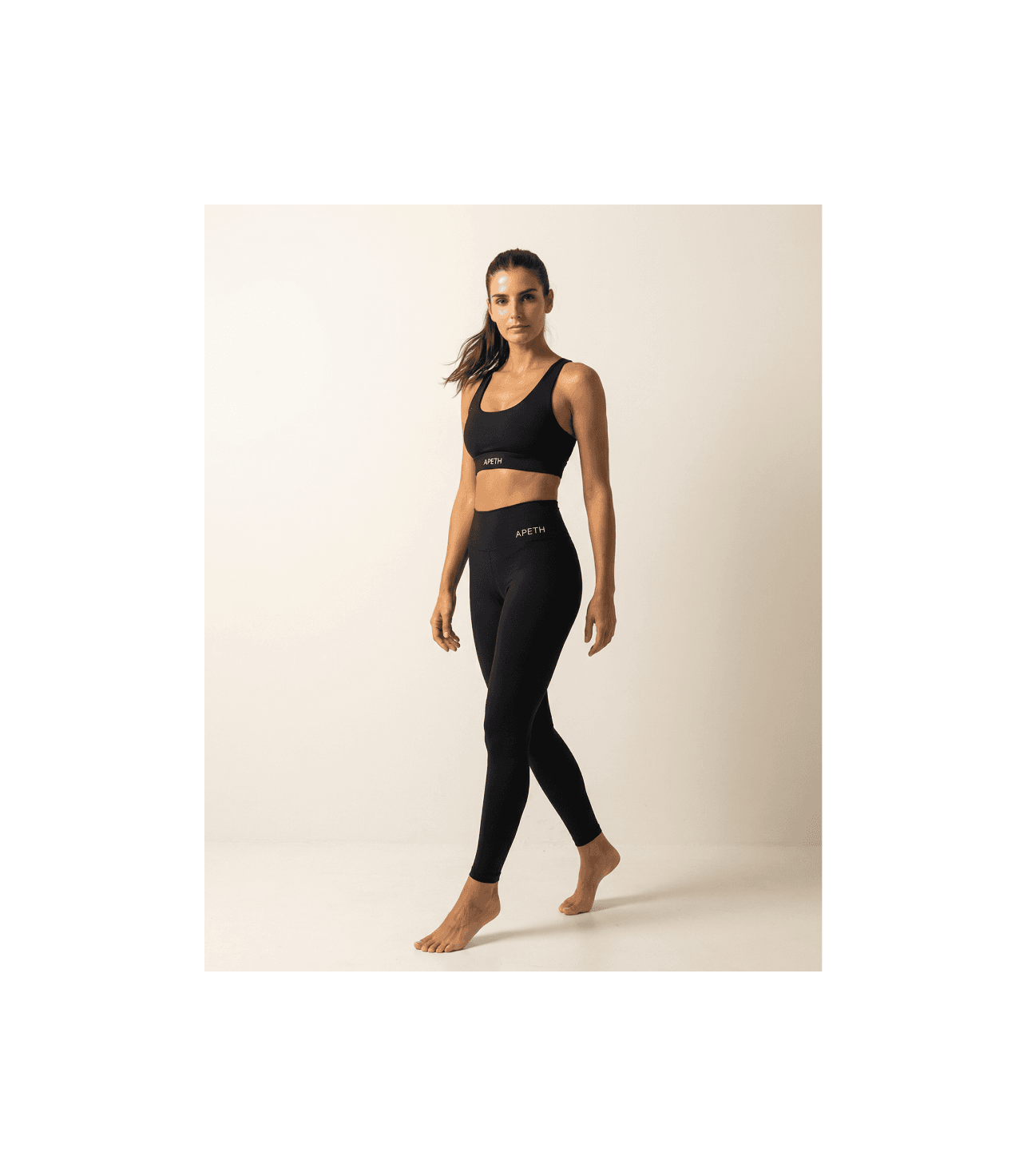 Legging full-length da linha ΑΡΕΤΗ. Cintura alta com logo ΑΡΕΤΗ no cós, compressão sculpting que modela e acompanha cada movimento. Elegância absoluta do treino ao dia a dia.